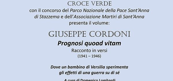 La Croce Verde di Pietrasanta, con il concorso del Parco Nazionale della Pace Sant’Anna di Stazzema e dell’Associazione Martiri di Sant’Anna presenta il volume di GIUSEPPE CORDONI, Prognosi quoad vitam, racconto in versi (1941 – 1946) - Dove un bambino di Versilia sperimenta gli effetti di una guerra su di sé A cura di Domenico Lombardi Edito da “QUADERNI DI ERBA D’ARNO” Sabato, 6 dicembre 2025, ore 17,00 Sala dell’Annunziata, Centro Culturale “Luigi Russo” Via Sant’Agostino, 1, Pietrasanta (LU) Un recital tratto da PROGNOSI QUOAD VITAM sarà interpretato dall’attrice SIMONA NASI